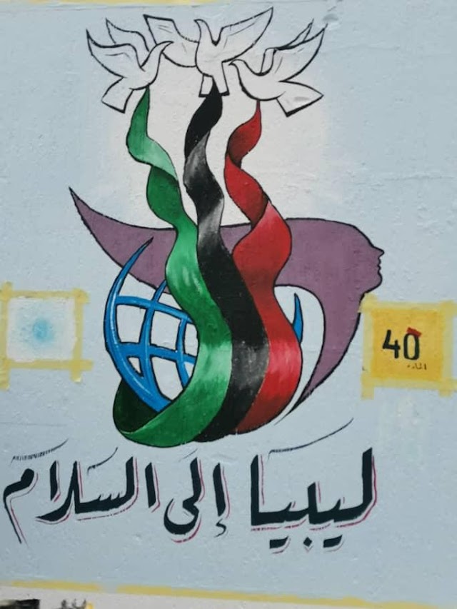 شبكة نساء ليبيا لدعم السلام ، وهي شبكة من النساء يمثلن طيفًا اجتماعيًا وسياسيًا وجيليًا وجغرافيًا واسعًا في ليبيا المنقسمة بالحرب ، دخلت في شراكة مع حملة المادة 40 ، وهو مشروع توعي تربوي بقيادة الشباب يهدف إلى تعزيز التماسك الوطني في ليبيا. ، لكشف النقاب عن عمل فني مذهل - جدارية السلام في ليبيا.